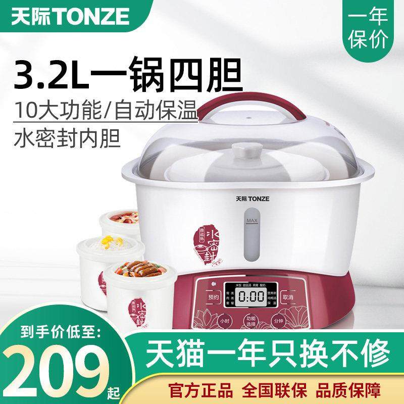 tonze/天际 ddz-16a电炖盅白瓷家用隔水电炖煲汤陶瓷一锅三胆1.6L