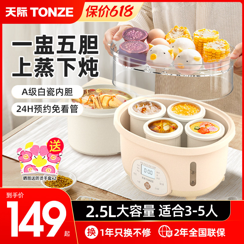 天际隔水炖电炖盅2.5L大容量电炖锅煮粥锅煲汤锅一锅四胆25AG预约