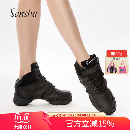 Sansha 法国三沙现代舞鞋女爵士软底皮面加绒运动舞蹈鞋广场舞鞋