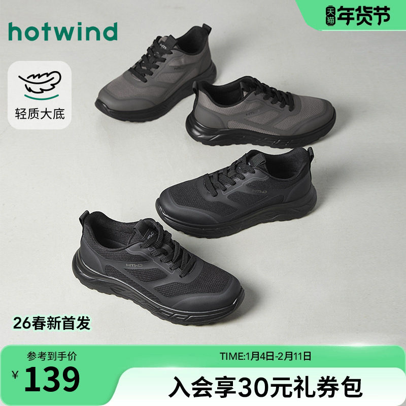热风男鞋2026年春季新款男士黑色运动休闲鞋户外百搭跑步鞋子潮
