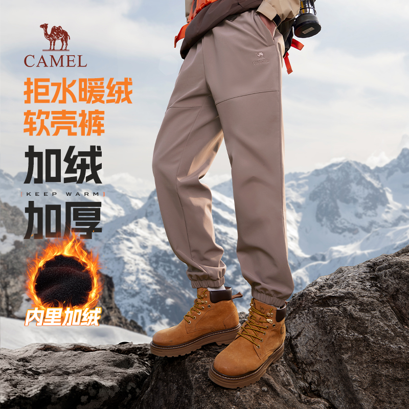 骆驼男装休闲长裤男士秋冬季2025新款加绒保暖直筒防泼水软壳裤子