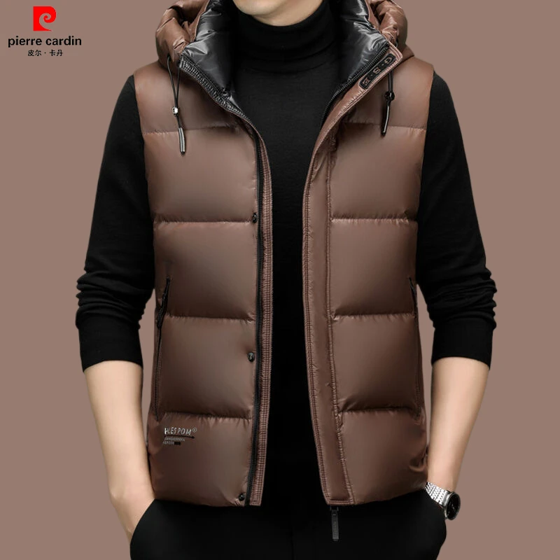 皮尔卡丹高档男士羽绒马甲秋冬休闲男装外套无袖坎肩白鸭绒羽绒服