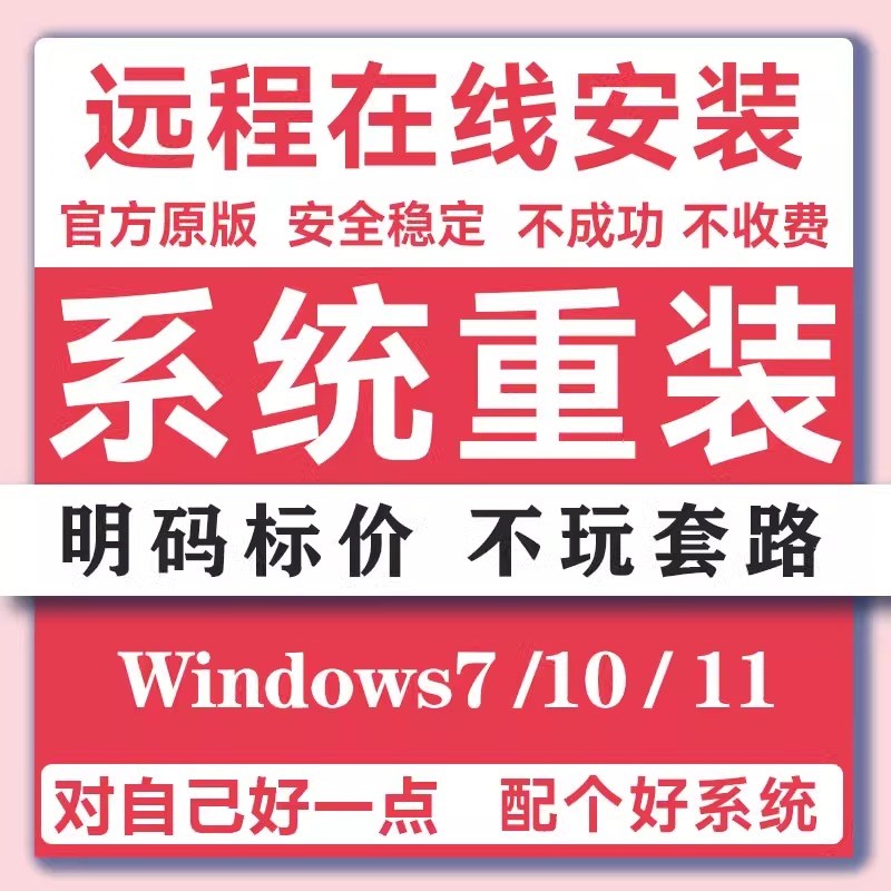 电脑系统重装win7/10/11远程安装维修专业做台式笔记本纯净版原版
