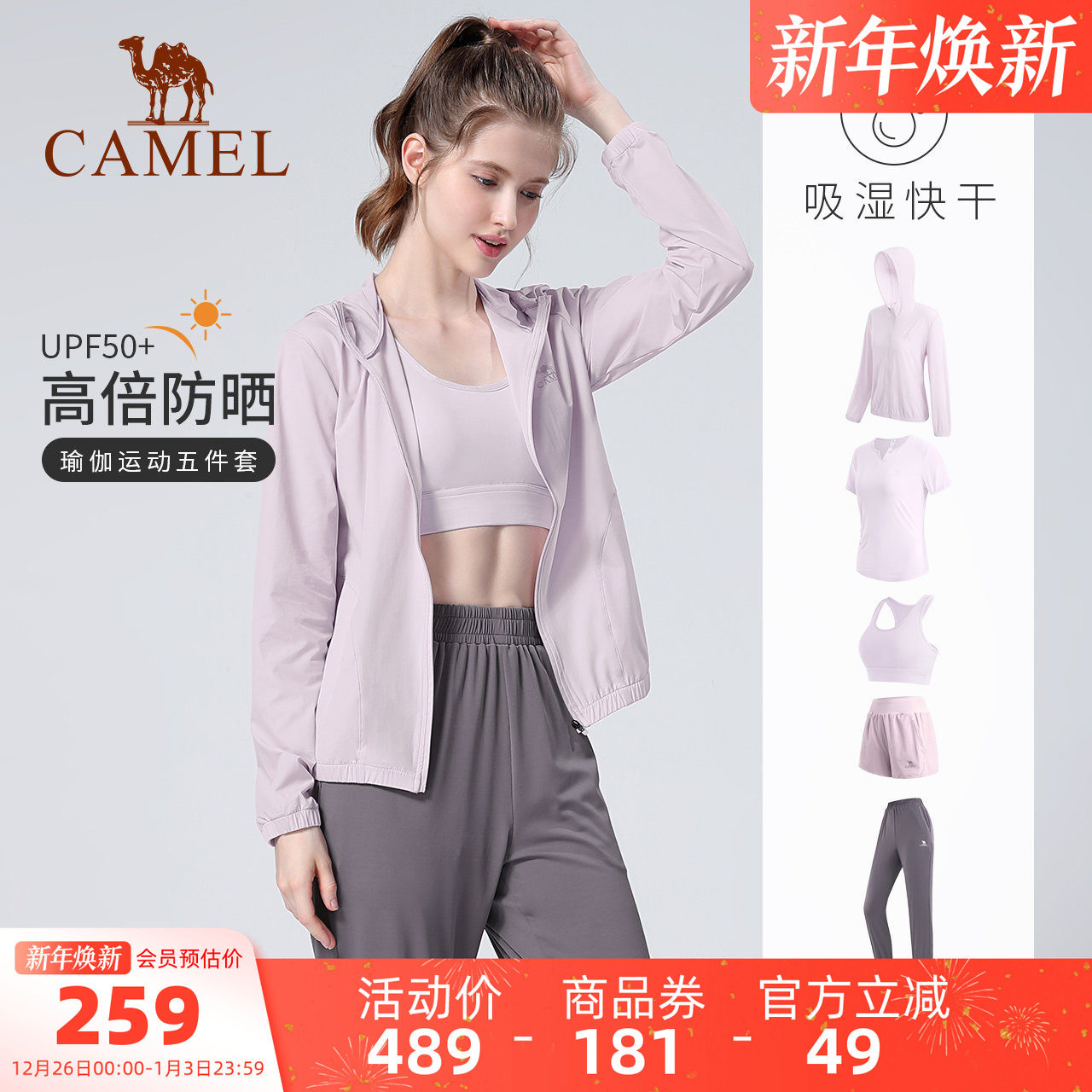 骆驼瑜伽服套装女防晒秋冬户外跑步健身服专业健身房运动服五件套