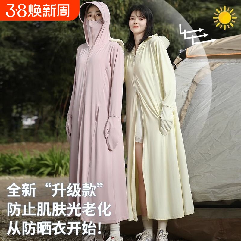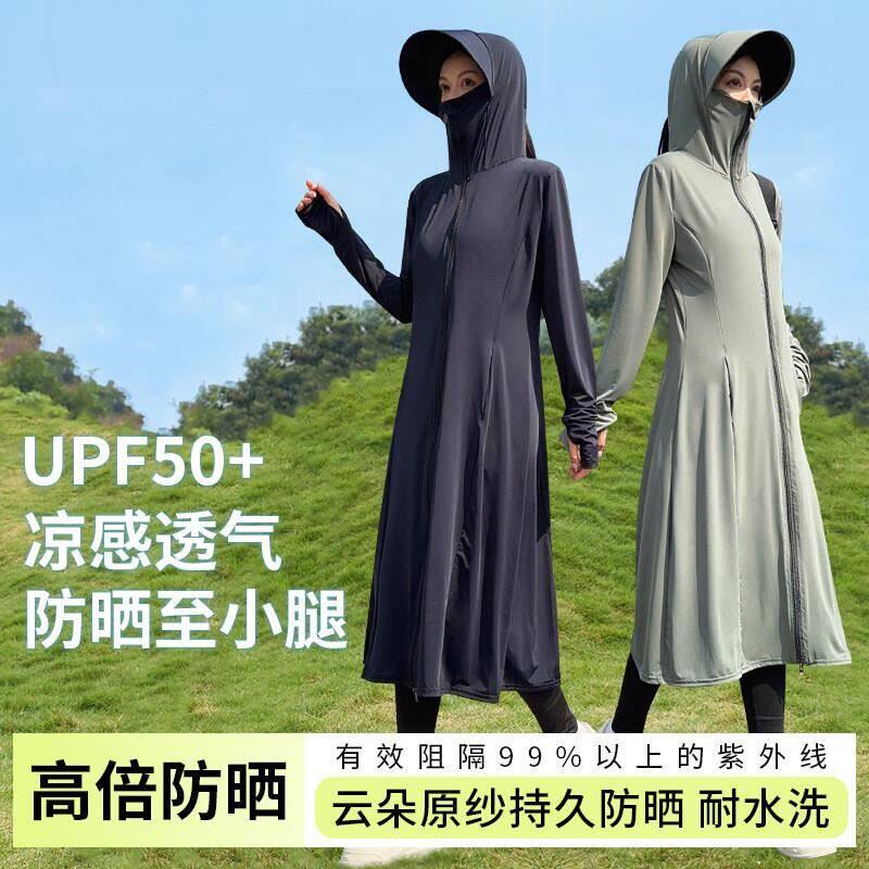 茉寻源纱长款防晒衣女夏季全身防紫外线连帽防晒服轻薄款加长外套