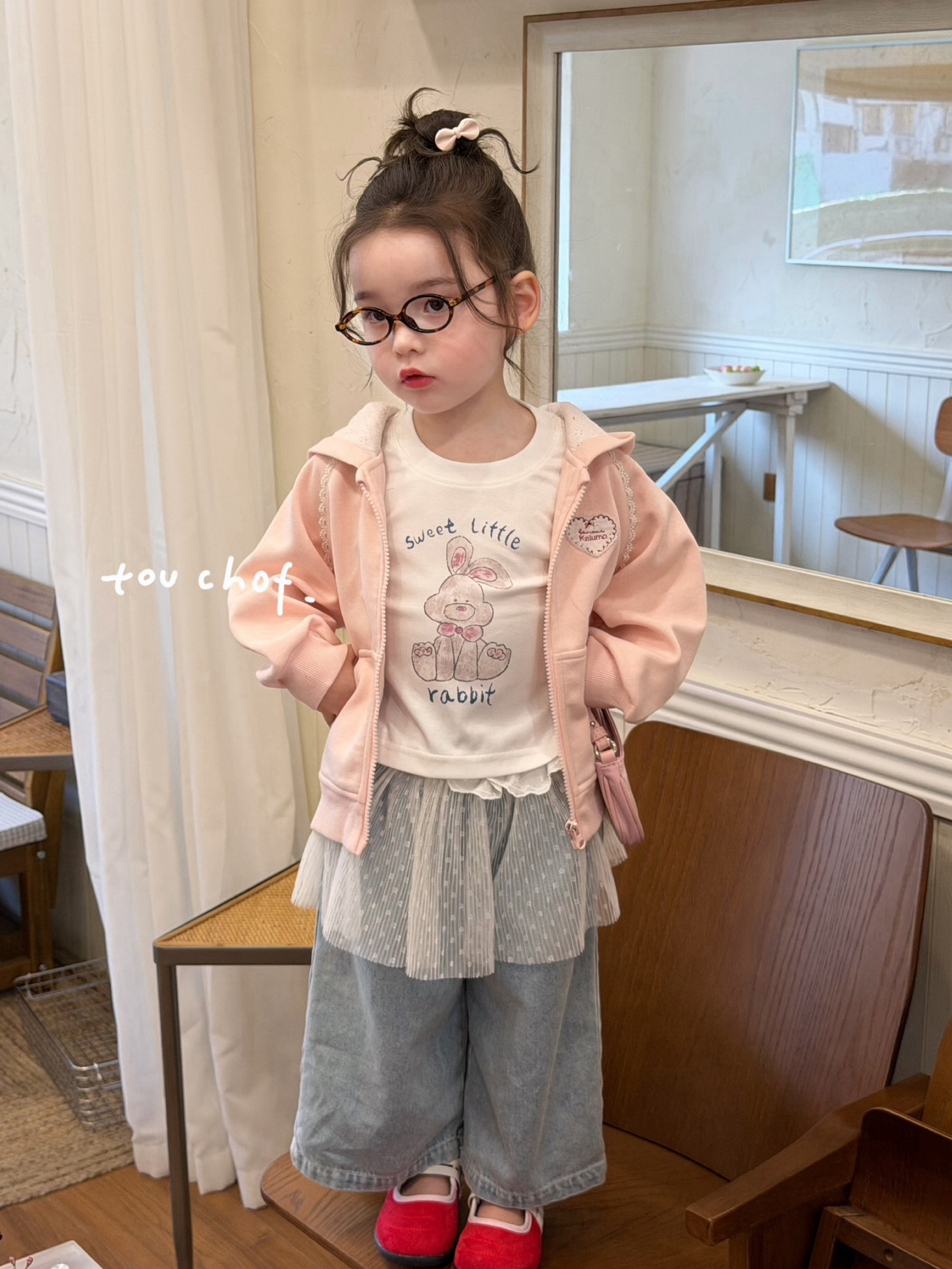 凡妈童装2026春夏女童小童韩版兔子短袖T恤纱长裤休闲连帽衫外套