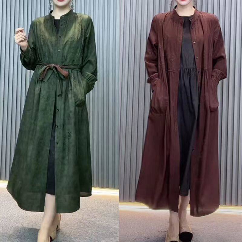 高端两面香云纱风衣女中长款2023夏季中年妈妈穿显瘦百搭时尚外套