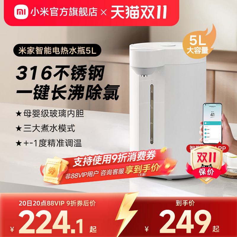 小米官旗米家智能电热水瓶5L恒温保温水壶大容量功率烧水壶不锈钢