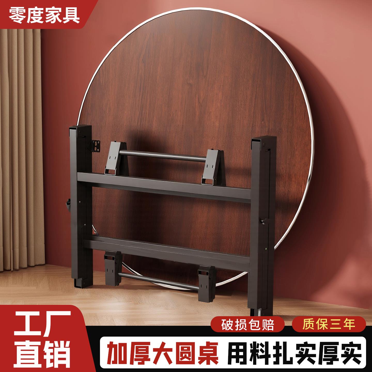 可折叠圆桌家用圆形餐桌带转盘简易小户型大圆桌面可移动10人饭桌