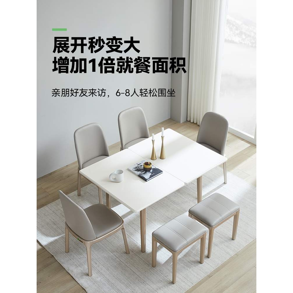 餐桌家用小户型可折叠伸缩现代简约实木桌子奶油风餐桌椅组合高端