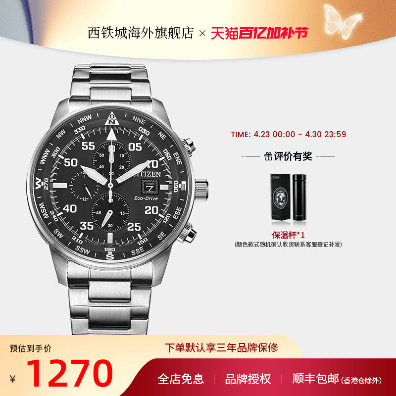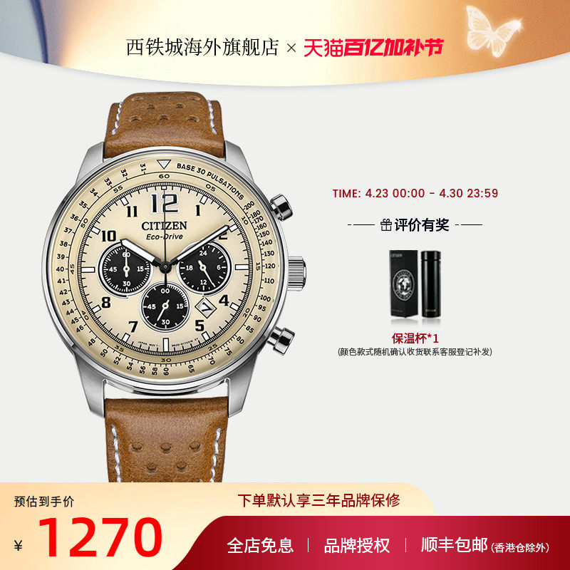 【热销爆款】西铁城FF飞行户外运动休闲腕表光动能皮带男表CA4500