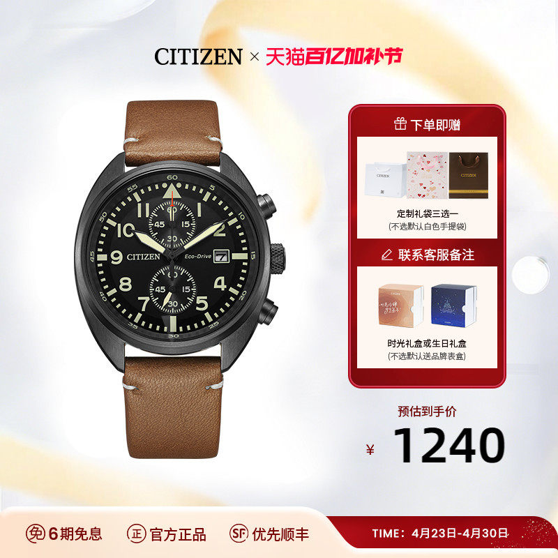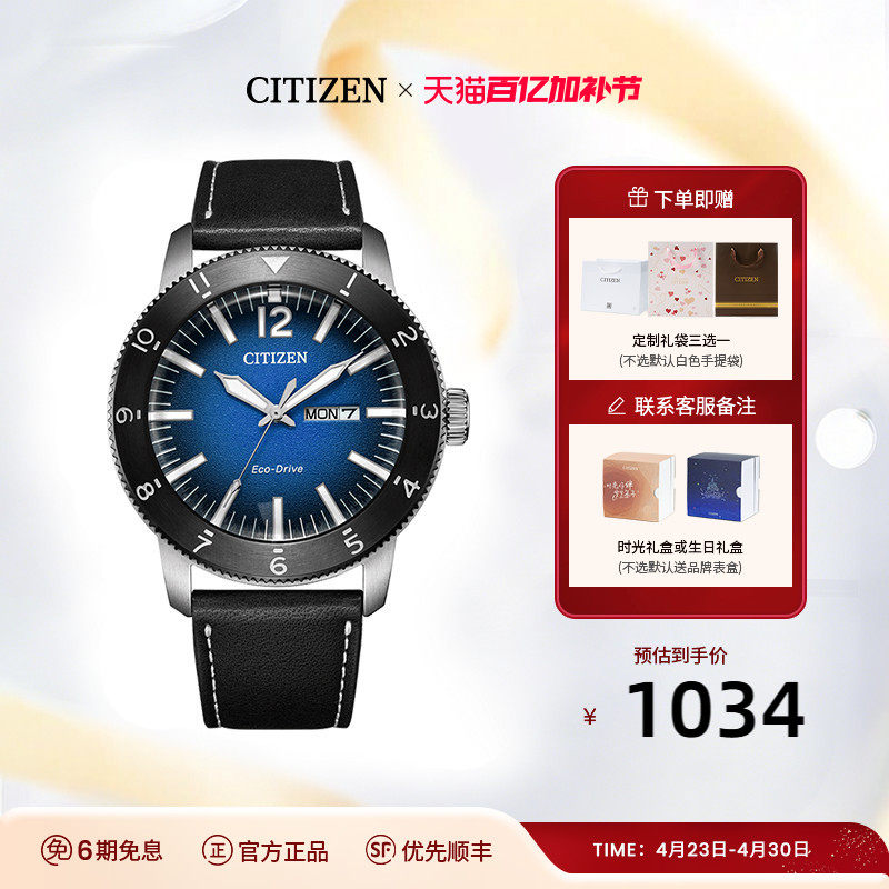 【人气热卖】西铁城官方旗舰店光动能小蓝针休闲皮带男表AO9000