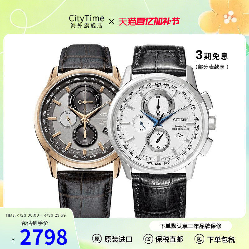 Citizen西铁城腕表光动能多局电波休闲时尚皮带男表AT8110-11A
