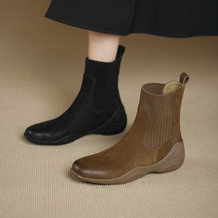 - 圆头平底女靴