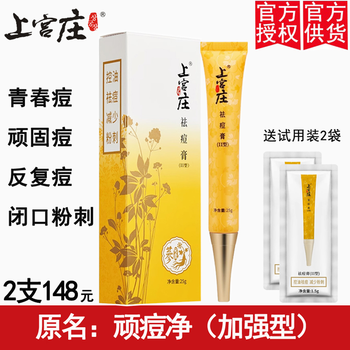 上宫庄祛痘膏顽痘净加强型男女学生去闭口粉刺青春痘痘痘印上官庄