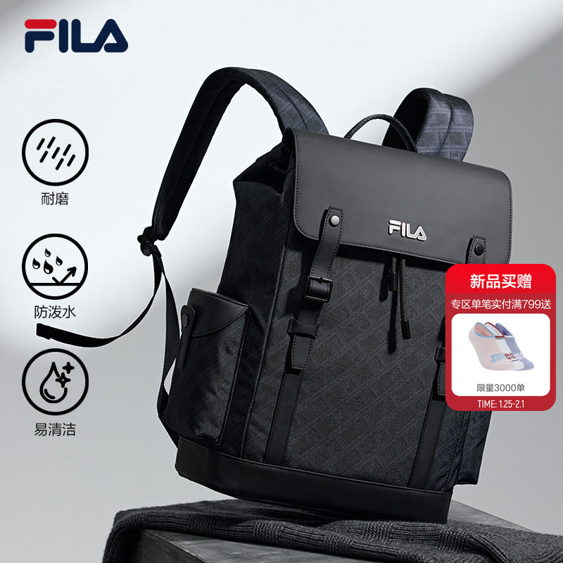 黑武士|FILA 斐乐官方男通勤老花背包新款休闲翻盖背包电脑双肩包
