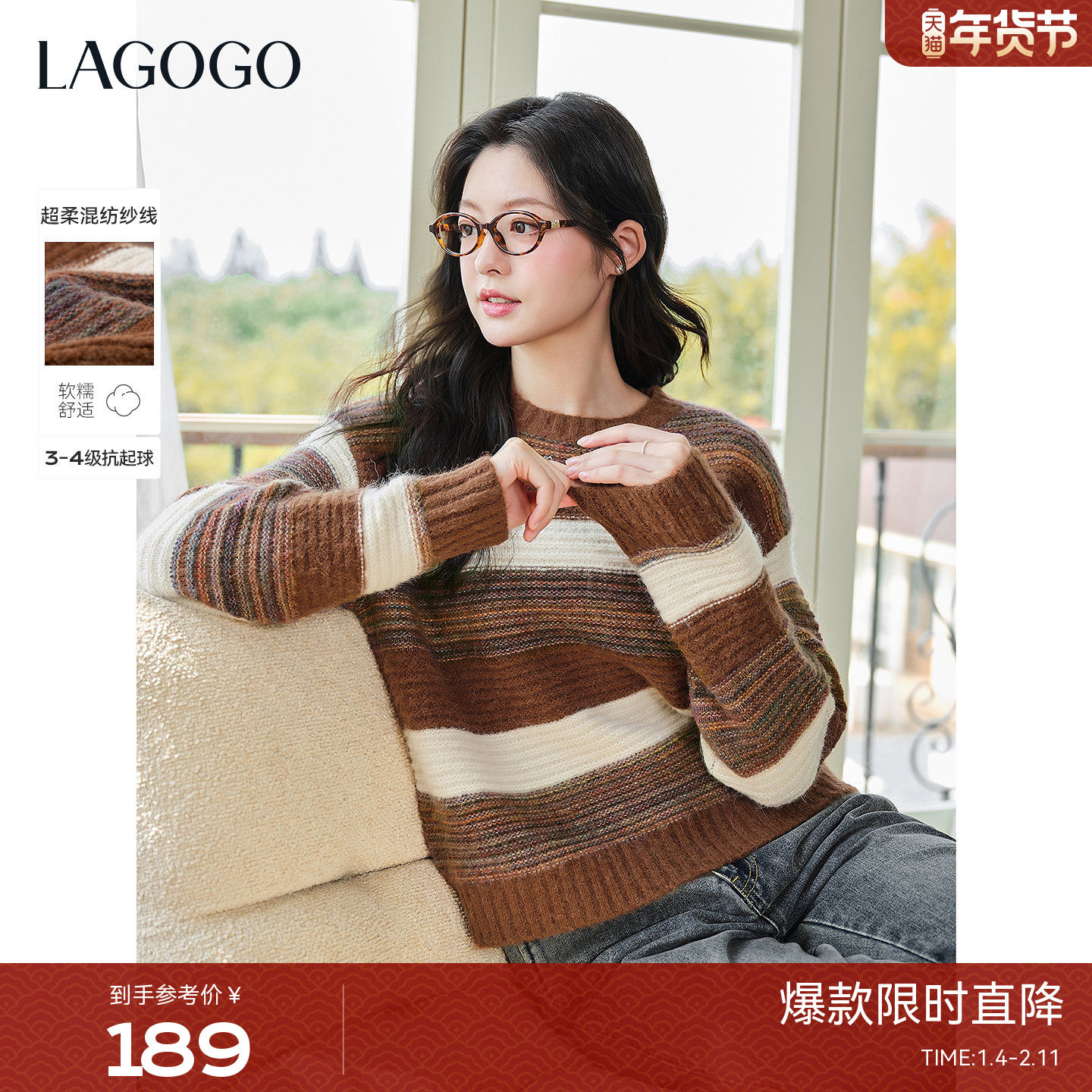 - 条纹羊绒衫 女