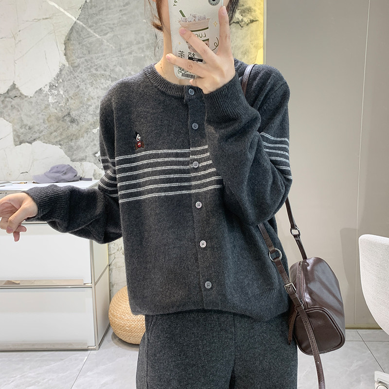 - 圆领针织衫开衫外套女