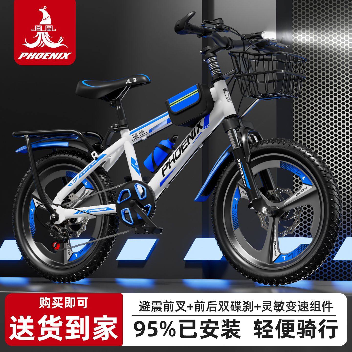 凤凰儿童自行车碟刹减震18/20/22寸男女孩7-9-12岁轻便变速山地车
