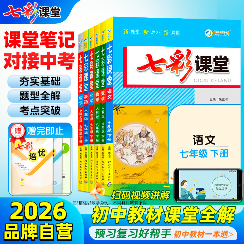 2026七彩课堂初中九年级下册语文英语数学化学物理地理历史人教版七年级八年级上册同步讲解教材全解中考划重点学霸预复习资料笔记