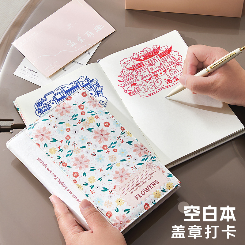 空白盖章本高颜值空白笔记本旅行打卡收集手帐本加厚超厚软皮面简约大学生用画画插画A5笔记本子博物馆盖章本