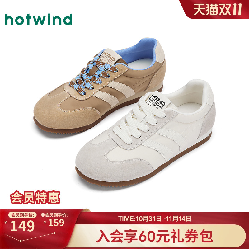 热风平底休闲鞋女款2025年冬季新款米色百搭运动女鞋户外跑步鞋子