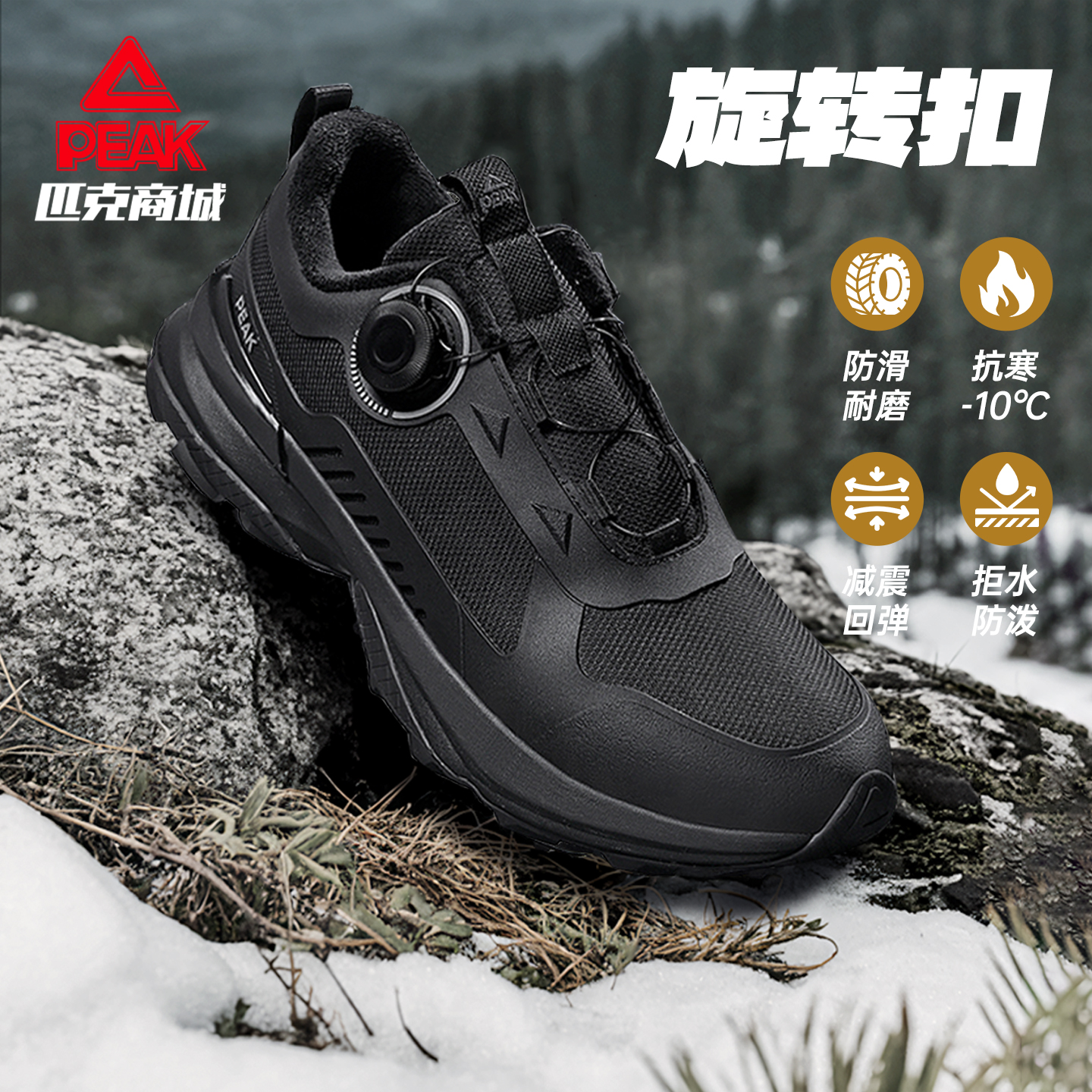 匹克态极男鞋旋转扣增高休闲健步运动鞋男2025冬季加绒户外跑步鞋