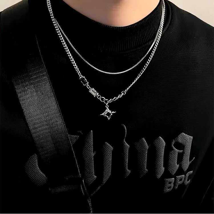星芒双层项链潮流嘻哈轻奢小众设计高级感男项链钛钢男高级感痞帅
