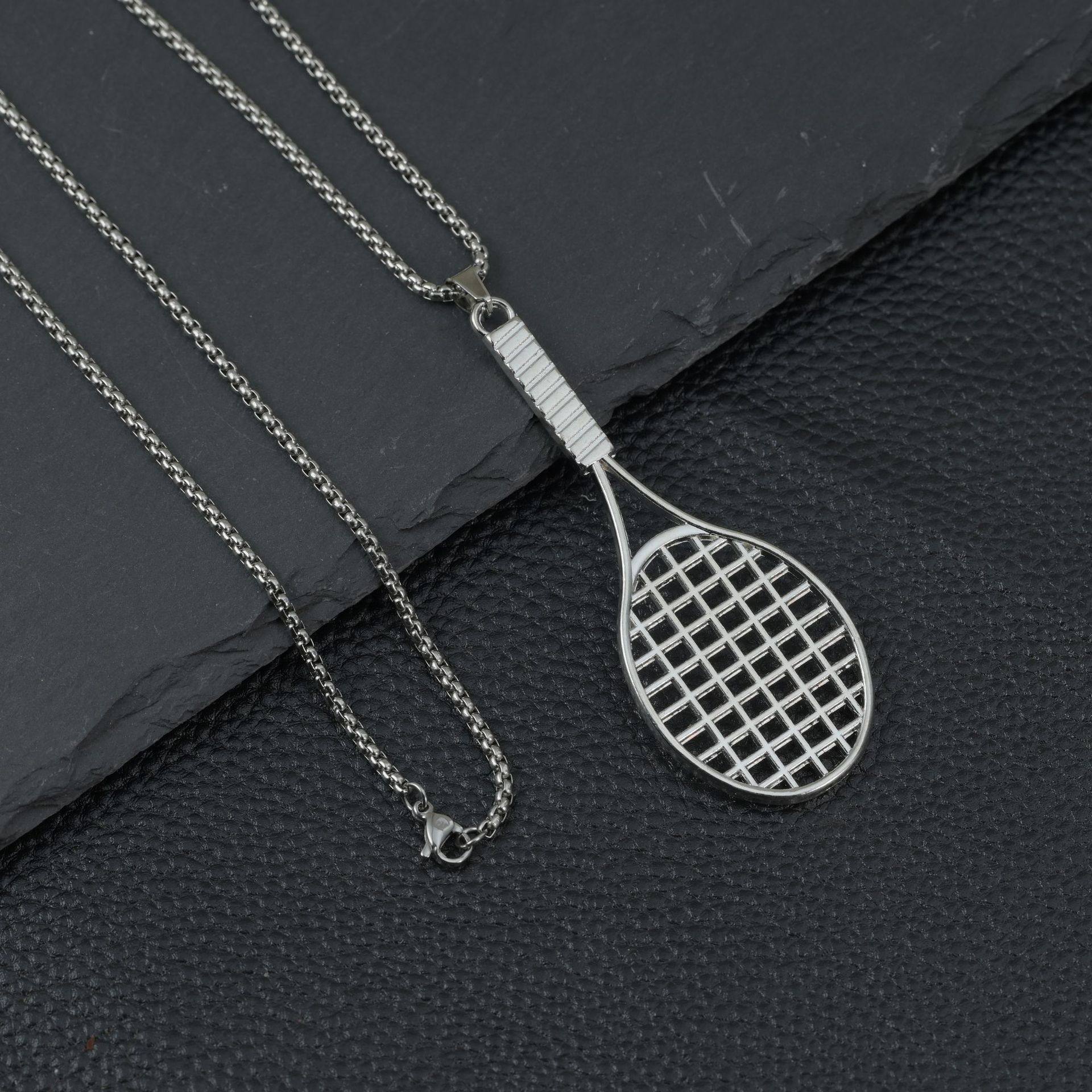 新款个性创意网球拍项链钛钢男女款小众设计感嘻哈长款毛衣链配饰