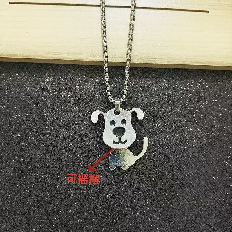 新款可爱小狗吊坠可摇摆项链钛钢男女街头嘻哈项链秋冬长款毛衣链