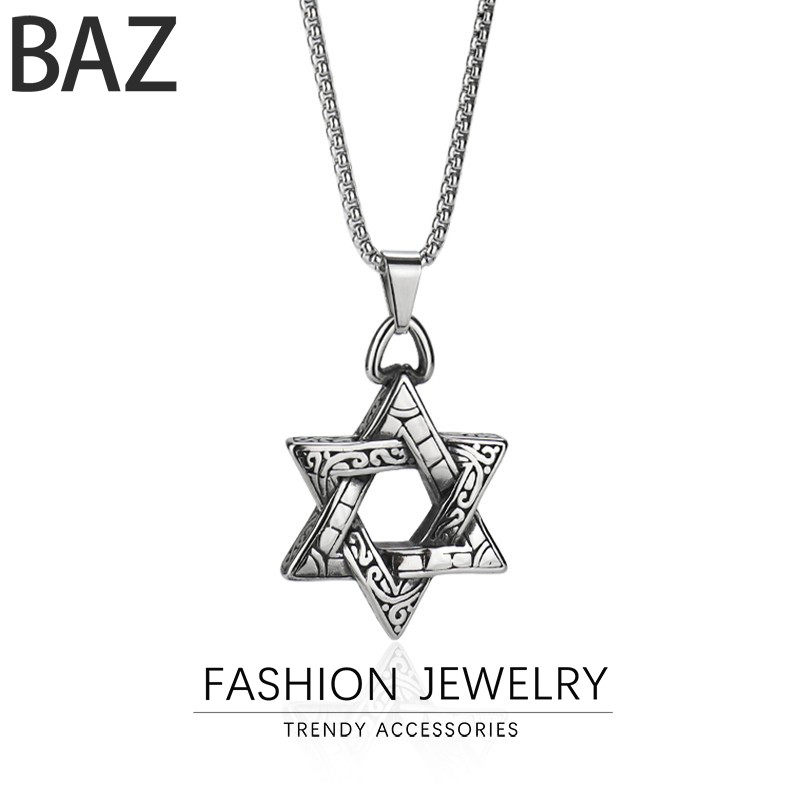 复古hiphop欧美酒吧嘻哈潮流配饰双面六芒星项链男女款钛钢饰品男
