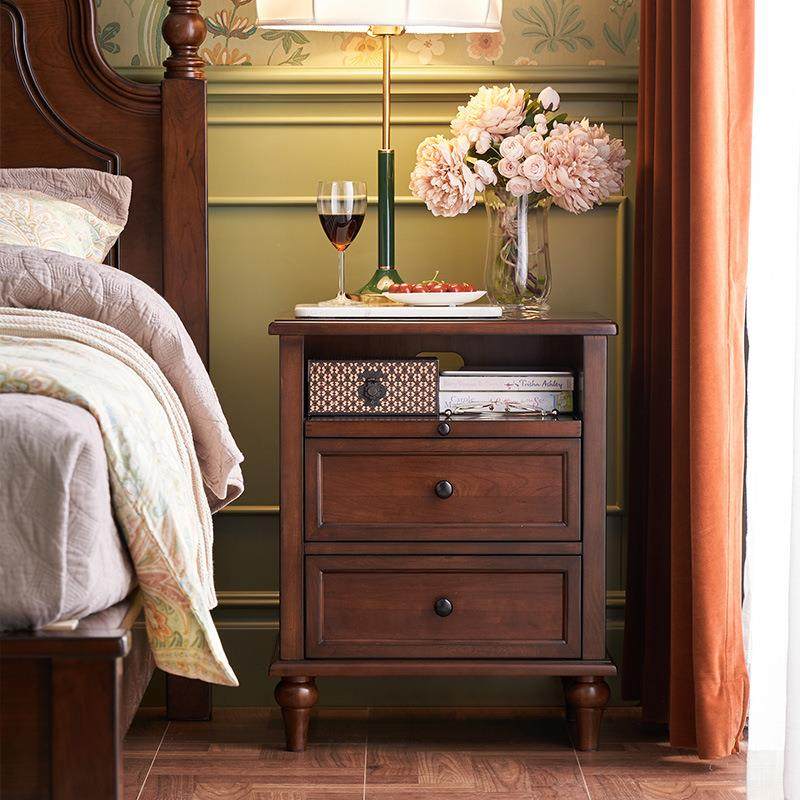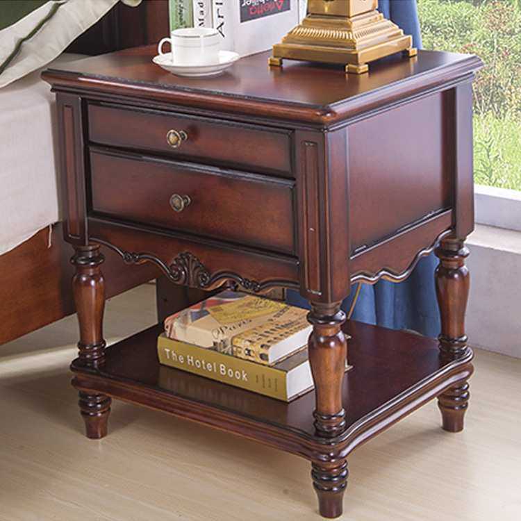 美w室式乡村全实木家具床边小柜子二抽床头简约卧经济型双抽头床&