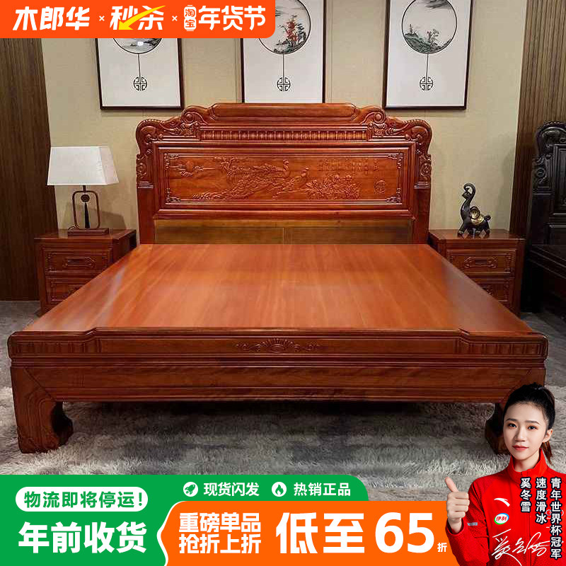 新中式实木床榫卯大床1.5M双人床简约经济型现代家具主卧室储物