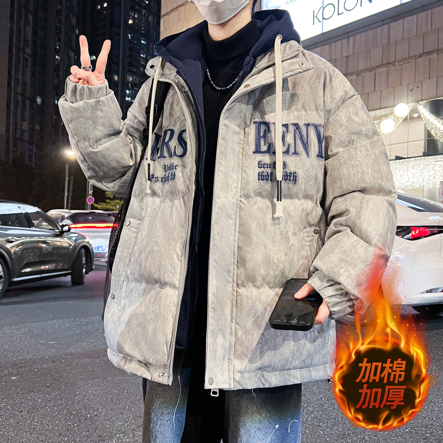 奥莱专柜羽绒棉服男士冬季连帽加厚保暖宽松棉衣初中高中学生外套