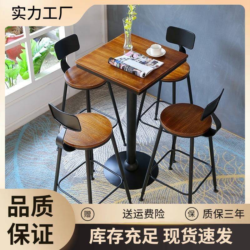 铁艺吧台椅酒吧高脚凳吧椅简约小圆方桌家用前台实木桌椅套装组合