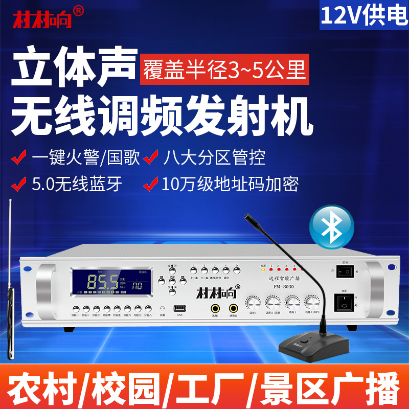 村村响FM调频立体声发射机无线广播系统农村广播12V供电预警广播