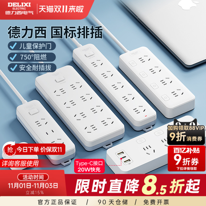 德力西插座usb插排插线板接线板拖线板多用多功能面板排插多功能