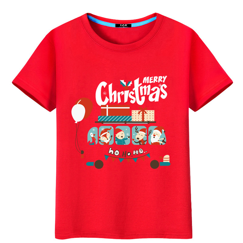 圣诞节衣服圣诞老人卡通夏季纯棉短袖T恤青年男女情侣装班服定制