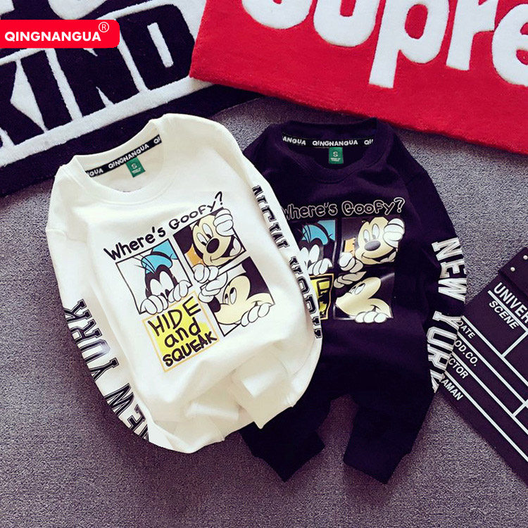 2024秋冬长袖港风潮牌宽松卡通印花套头圆领卫衣男女情侣装班服棉