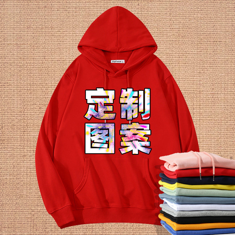 纯棉卫衣连帽套头中国红情侣装班服定制logo团R体服聚会工作服印