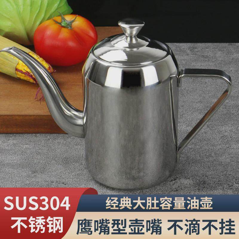304不锈钢油壶 防漏油罐家用厨房装炒菜油瓶不挂油小油瓶滤油神器