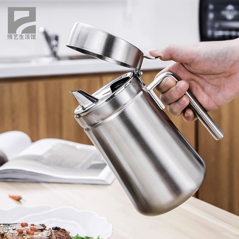油壶304不锈钢防漏过滤网厨房家用不挂油大容量装油壶油罐滤油壶