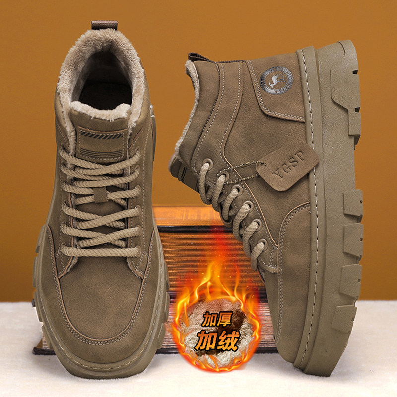 高帮男鞋冬季英伦风复古休闲皮鞋工作百搭加绒棉鞋厚底增高马丁靴