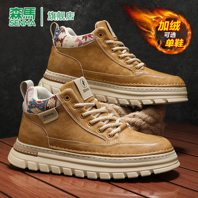 森马高帮加绒马丁靴男2025秋冬季新款复古大黄靴棉鞋英伦风工装靴