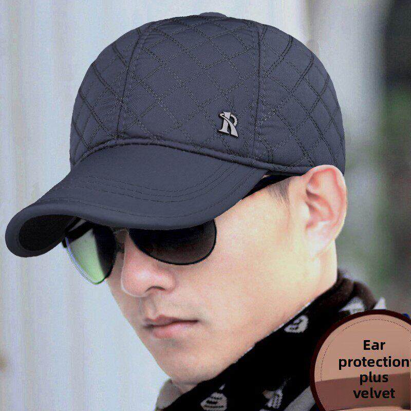 男子帽子2025年新的冬季天鹅绒加厚耳保护温暖尖顶帽户外棒球帽防