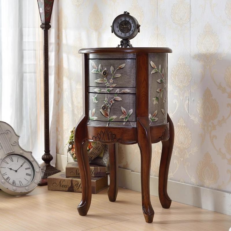 美式乡村实木沙发边几角几复古彩绘客厅小圆桌茶几小户型床头斗柜
