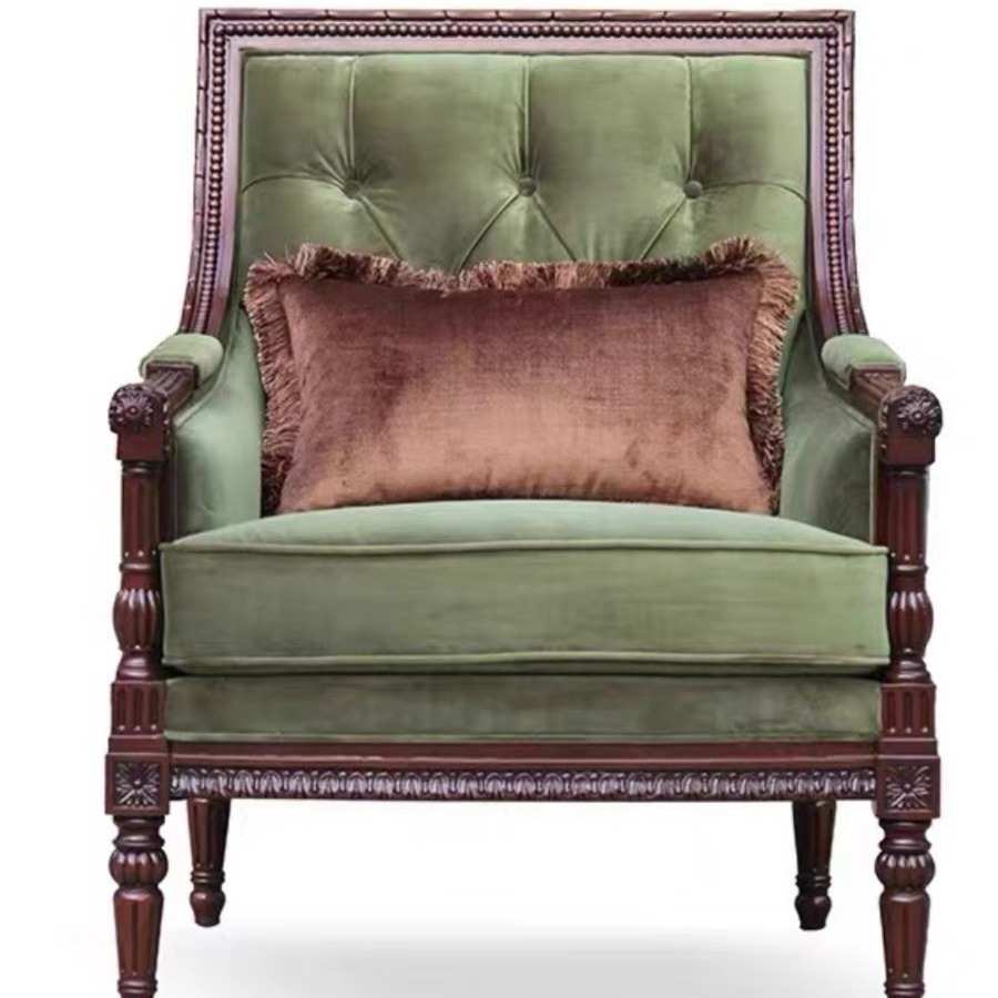 美式乡村实木沙发椅法式轻奢复古雕花客厅单人沙发欧式阳台老虎椅