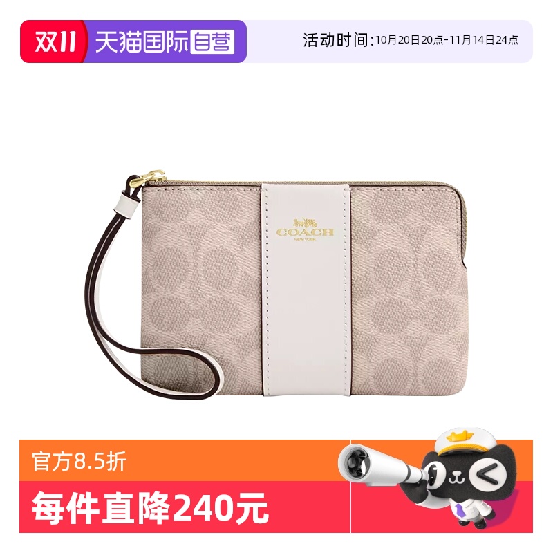 【自营】COACH/蔻驰女士手拿包老花迷你PVC配皮零钱包百搭手腕包