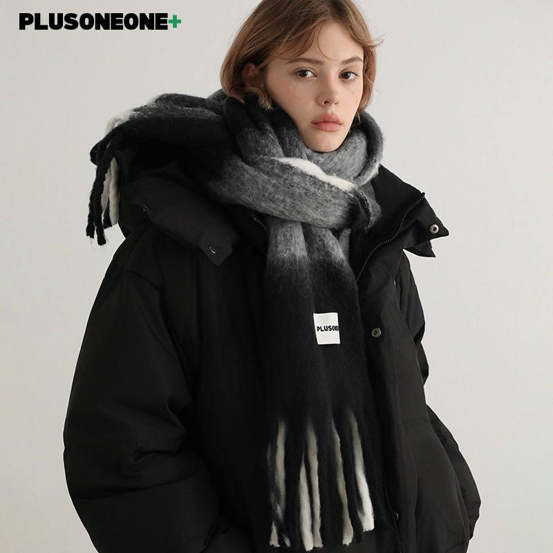 PLUSONEONE2026新款冬韩系黑白格纹围巾女加厚保暖围脖男披肩两用