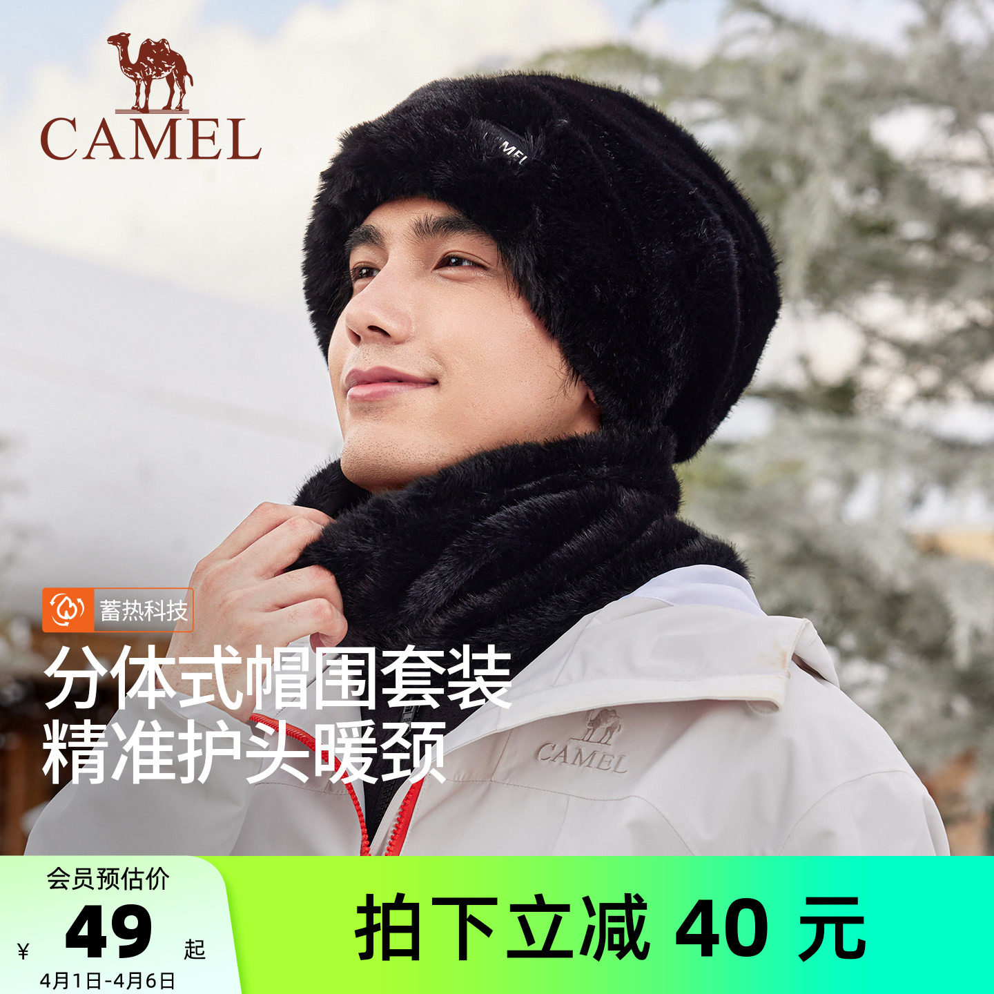 骆驼加绒保暖帽男帽子围脖两件套仿貂毛女加厚东北防风防寒包头帽